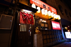赤い看板とたくさんの提灯が目印。ビリケンさんと牛のオブジェが出迎えます